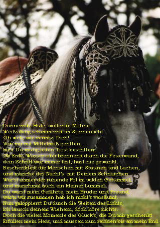 absolviert. Eine wirklich coole Socke auf den man sich 1000 % verlassen konnte. Leider verstarb er im März 08 an einer schweren Kolik im Alter von nur 20 Jahren.